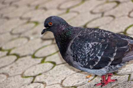 Common pigeon, dove bird sitting on the pavement