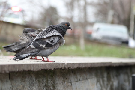 Lovely pigeon birds , city doves by live in an urban environment