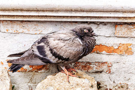 Pigeons in a city. concept of dirty hungry birds in the town.