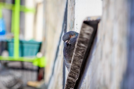 Pigeons in a city. concept of dirty hungry birds in the town.