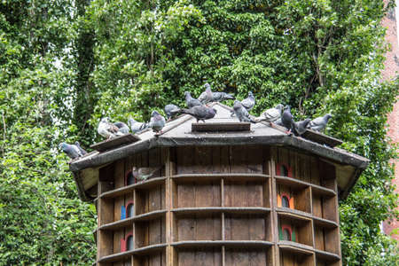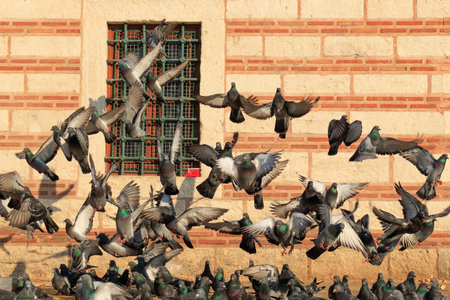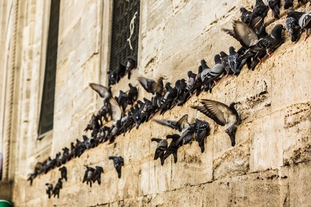 Bustle hustle and bustle among city pigeons are gregarious birds.