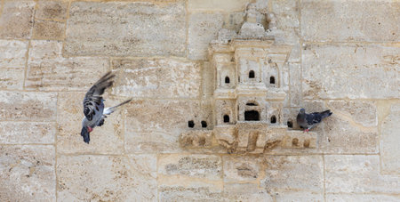 Pigeons on the walls of the Cathedral of the Assumption of the Blessed Virgin Mary in Jerusalem