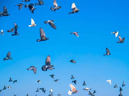 Top view of a background with doves. Rock Pigeons crowd streets and public squares, living on discarded food and offerings of birdseed.