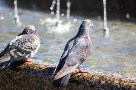 Pigeons in a city. concept of dirty hungry birds in the town.