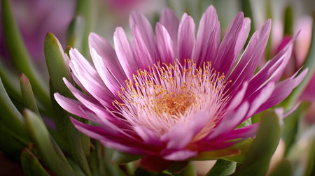 Pink Ice Plant Flower with Yellow Stamens Blooming Profusely