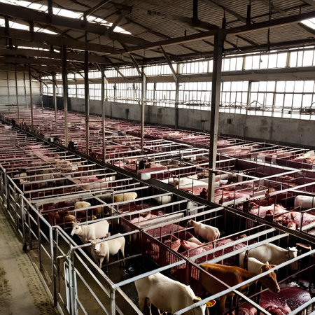 Pigs waiting feed,pig indoor on a farm yard. swine in the stall --ar 16:9 --v 6 Job ID: f3d6f071-74bc-4c67-b4ab-0e44ab38f85a