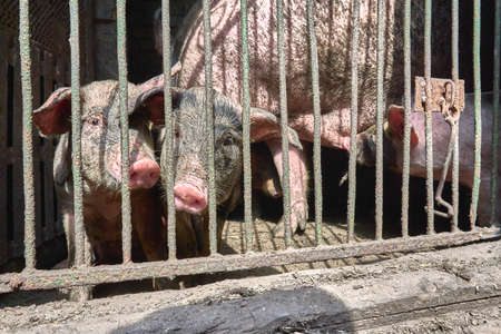 Ecological pigs and piglets at the domestic farm, Pigs at factory