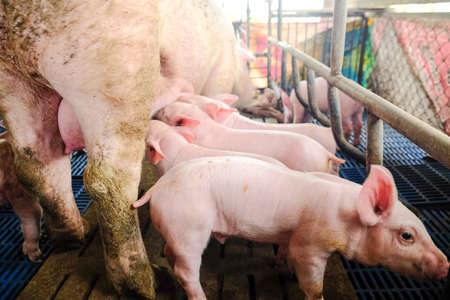 Group of pig that looks healthy in local swine farm at livestock. The concept of standardized and clean farming without local diseases or conditions that affect piglet growth or fecundity