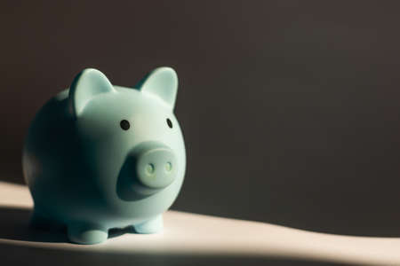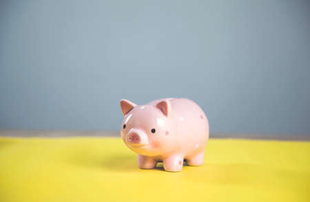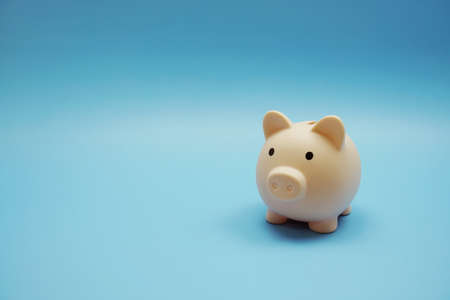 Piiggy bank close-up on a blue pastel background. Minimalism