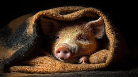 Playful piglets snuggle in soft bedding amid warm, rustic surroundings, radiating innocence and comfort in a charming rural landscape.
