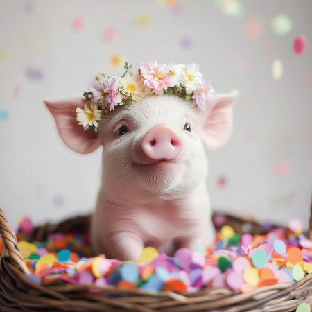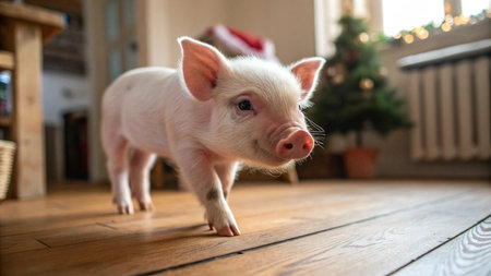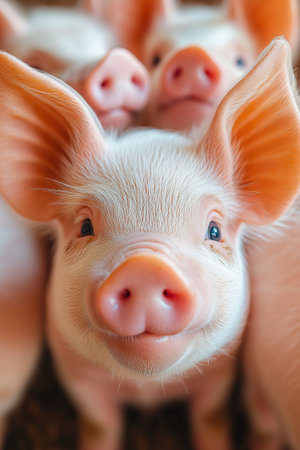 Playful piglets cuddle and explore in a cozy barn, their pink snouts and tiny hooves creating a charming, rustic farm scene full of warmth and innocence.