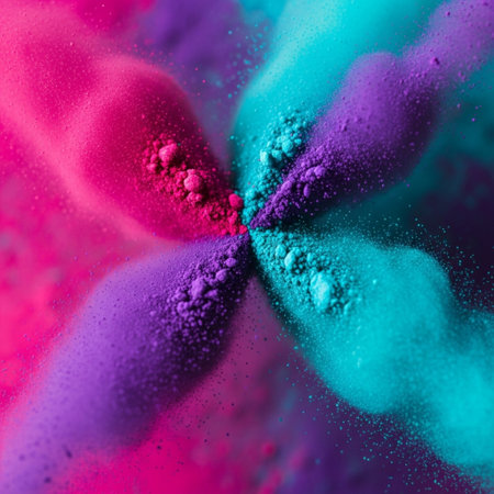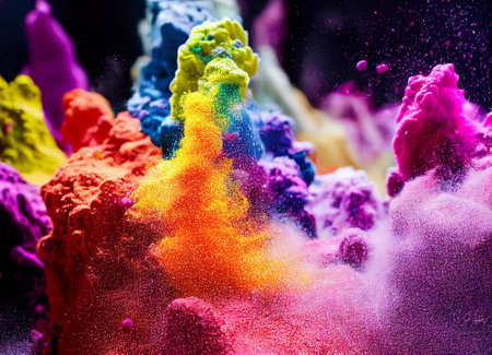 Vibrant display of colored powder creating a stunning abstract art piece in a bright and lively setting