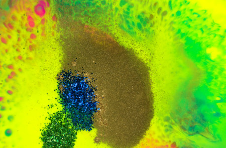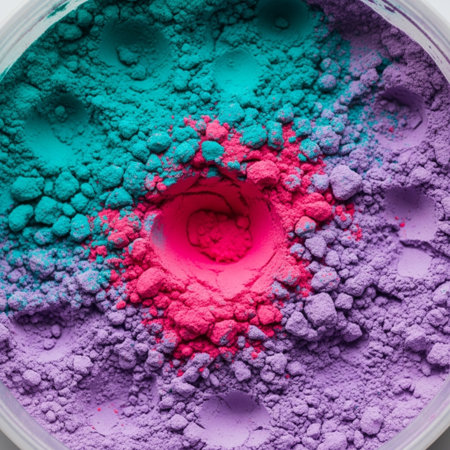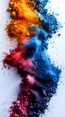 Beautiful blend of colorful powder particles scattered on a surface, creating a vibrant abstract art background, perfect for artistic or creative projects.
