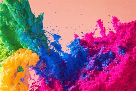 This stunning image captures the vibrant explosion of colorful powders, creating dynamic abstract patterns that evoke creativity and artistic expression.