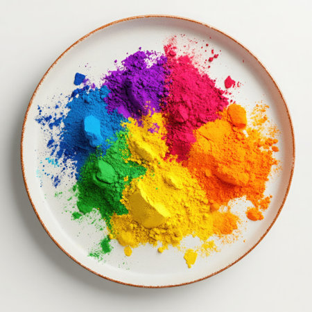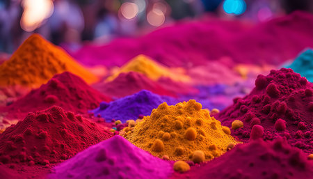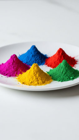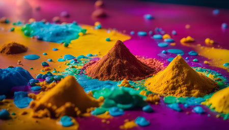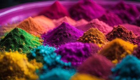A close-up view of colorful powder, a key element in the Holi festival, a vibrant and joyous celebration in India.