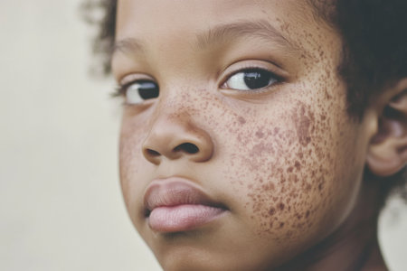Close-up of an American child with vitiligo, white spots on his cheeks