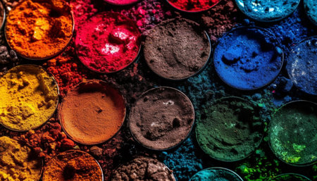 Vibrant colors in a row, crushed particle palette, shiny still life generated by artificial intelligence