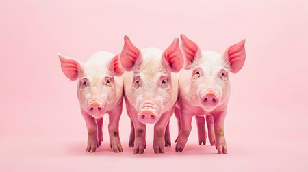 Adorable trio of baby piglet portraits posed together on a pink background Cute and playful domestic farm animal set perfect for children s products nursery decor or animal themed graphic design