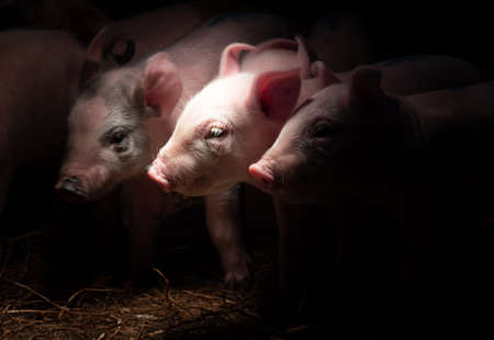 Portrait of a group of pigs on the farm. Animal husbandry.
