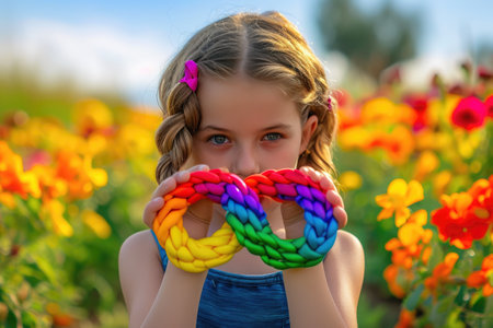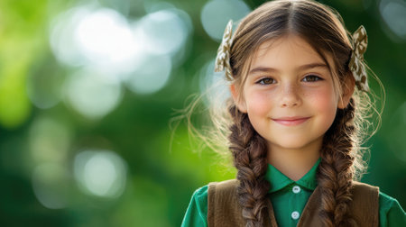 A Joyful Child with Colorful Braids is Enjoying Nature in a Bright and Cheerful Way