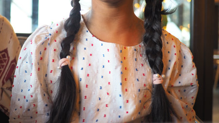 closeup cropped shot of a cute young ethnic girl with pigtails, created with generative ai