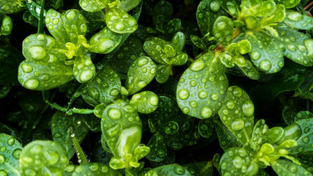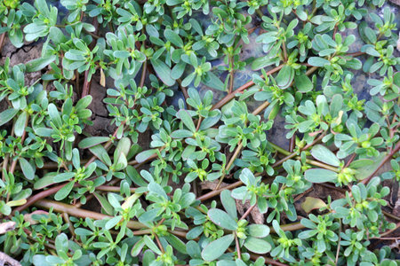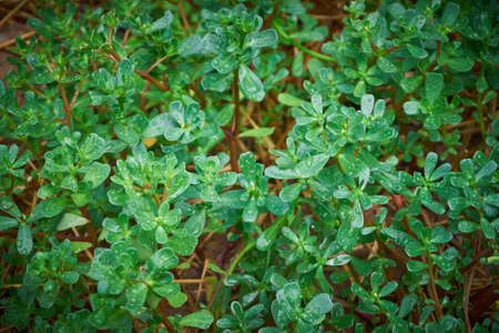 Fresh, green purslane leaves after the rain