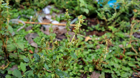 Orthosiphon aristatus green leaf in the garden, medicinal tree.