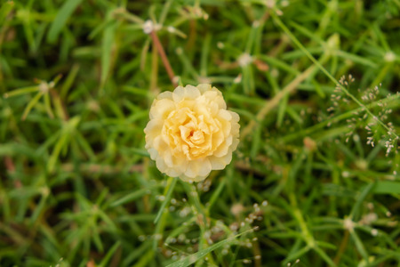 Portulaca oleracea white petals and yellow petal grass flower