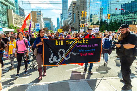 TORONTO, CANADA - SEPTEMBER 27, 2019: Global Strike for Climate and march for climate justice in Toronto, Ontario, Canada