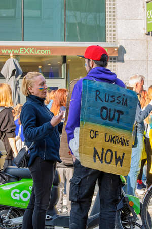 Downing Street, London | UK - 2022.03.19: Ukrainian people protest, thousands gather to demand tougher sanctions on Russia from British Government, EU and USA to stop the war in Ukraine