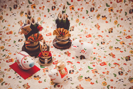 Rabbit and Kadomatsu figurine, one of the 12 zodiac signs celebrating the New Year