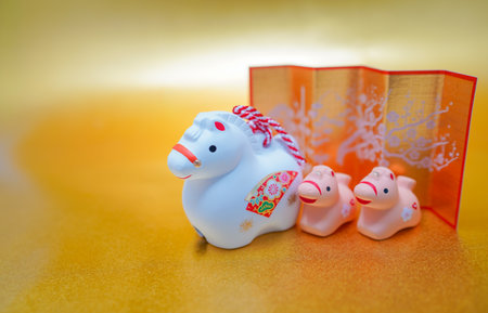 Images of the Year of the Horse alongside a gold folding screen. Shooting Location: Kanagawa Ward, Yokohama City