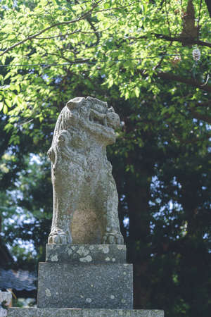 Komainu (guardian dogs) at Rokusho Shrine in Itoshima City, Fukuoka Prefecture. Roksho Shrine in Itoshima City, Fukuoka Prefecture