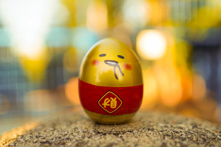 A closeup shot of a gold easter egg with an emoji on it