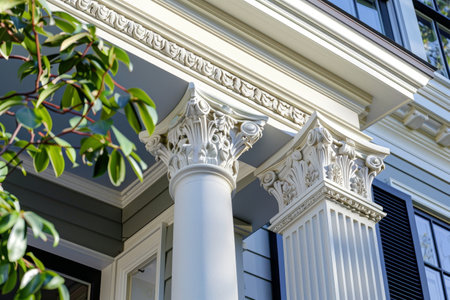 a close-up of a classical facade, with its intricate details and columns, created with generative ai