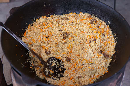 Real traditional street pilaf, rice dish