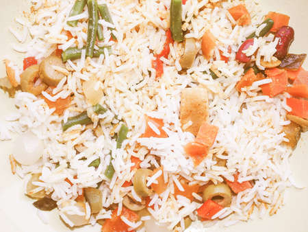Vintage looking Curry rice with season vegetables vegetarian Indian food