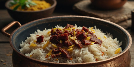 Pilaf is a rice and meat dish. AI Generated