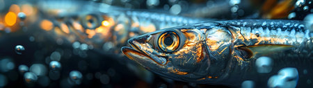 A close-up of a school of small fish swimming together, with their scales shimmering in the light, capturing the beauty of underwater life.