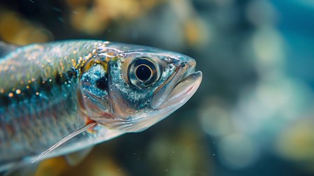 A stunning image of a vibrant fish gracefully swimming in clear water, captured against a visually appealing bokeh background. The scene evokes tranquility and showcases the beauty of aquatic life.