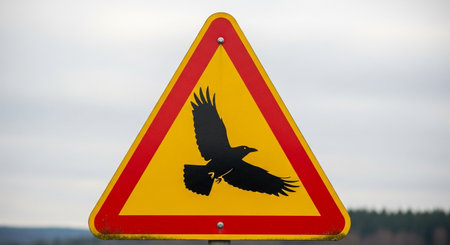 A crow soars high above a metal cross set against a pale sky, creating a striking contrast of nature and faith.