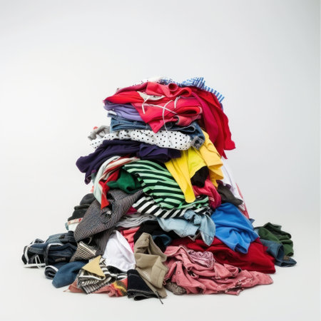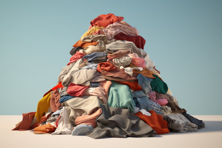 Piles of clothes illustrating the concept of fast fashion. A high quality image making by generative ai.
