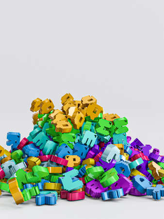 Abstract symbol or sign bunch of ABC character, CGI geometric, for web page, graphic design, texture, background. 3D render.