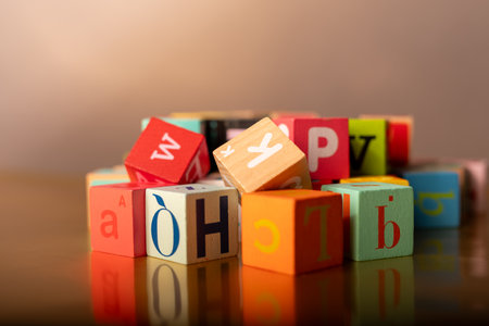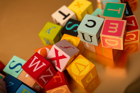 Colorful Alphabet Blocks Scattered on Gold Background