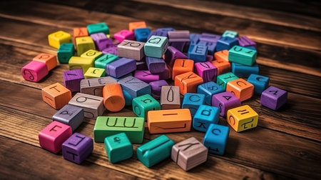 A vibrant collection of colorful alphabet letters scattered on a surface, ideal for educational activities, creative arts, and playful learning environments.