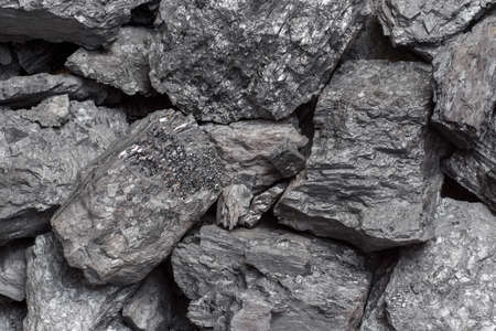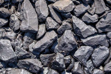 Pile of coal. Black coal texture background. Close up.