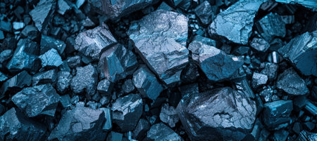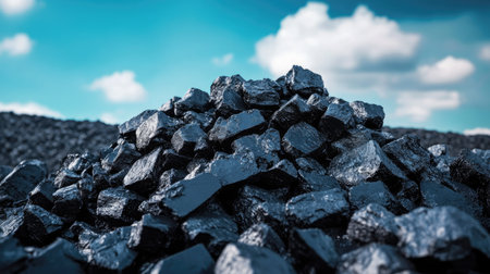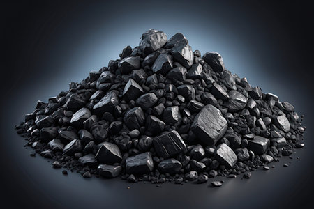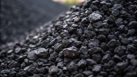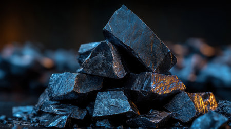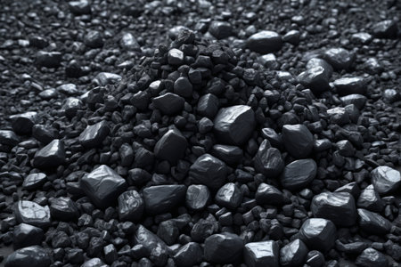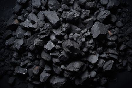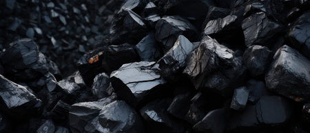 Close-up of a dark, heavy heap of varied coal, highlighting intricate details and rough edges. AI generative.