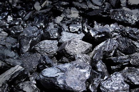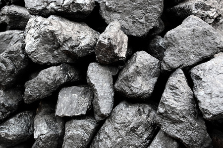 Close up photo of a black coal chunks pile