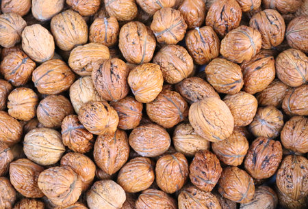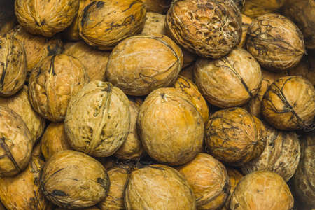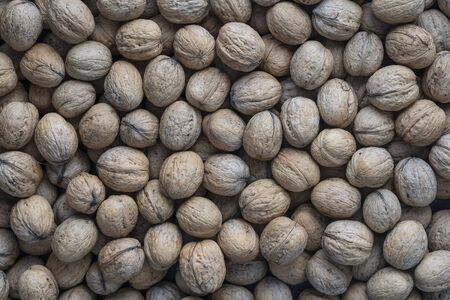 Natural walnut background pattern texture Abstract walnuts heap pattern background.
