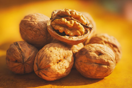 Nutty abundance showcases the rich texture and earthy tones of shelled walnuts ready for culinary delights and healthy snacking